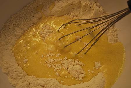 5. 將濕性材料分次倒進乾性材料裡,混合均勻