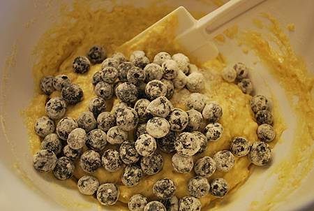 6. 藍莓均勻沾上1 tbsp麵粉,拌進步驟5麵糊(可省略,但裹麵粉可防止藍莓沉澱於底部)