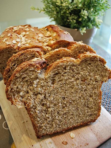 杏仁粗粒的脆脆口感均勻分布在麵包各處,搭配麥香濃濃很是舒服。
