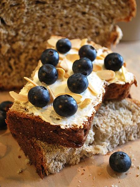 1. 抹上cream cheese 2. 鋪上新鮮藍莓及杏仁片 3. 灑上少許龍舌蘭蜜/蜂蜜/楓糖漿,讚!