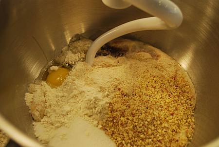 1/2 cup 烘焙用杏仁粉 almond meal (我將杏仁片打碎成粗粒)