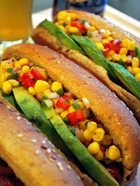 鹹香油潤又Q彈的熱狗、微甜微酸微辣的玉米莎莎,creamy細膩的酪梨,交織一曲美麗動人的三重奏,