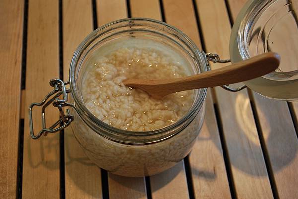 1. 將米麴剝碎,與海鹽充分混合後放進乾淨玻璃瓶中