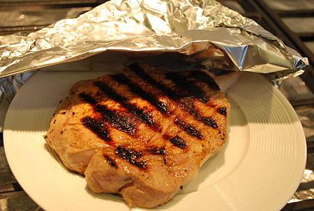 Step7. 取一張鋁箔紙包覆烤好的豬排,靜置10分鐘待肉汁重新分佈