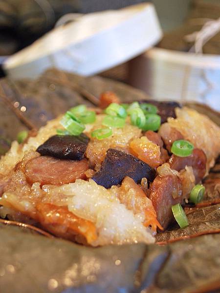 肚裡的愛吃蟲鑼鼓暄騰,問題是礙於手拙總是包不出美美的粽子,窈窕緊緻的粽腰線大嘆與我無緣,一年頂多練習一次的情況下,不是包不緊讓米粒露餡,就是調味料通通溶進水裡,剩下平淡無味的糯米飯。幸好愛吃是人類進化最重要的推手,港式飲茶裡常出現的荷葉粽(比較流行的稱法是「糯米雞」)是我最好的解套方法,蒸得軟嫩的糯米加上嫩雞肉與臘腸,再飽都想點來吃一口。大一點的亞洲超市或中藥房都買得到乾的荷葉,我這次買到的攤開後直徑有五、六十公分大,拿來做粉蒸肉也很適合。荷葉易碎,建議操作前先用熱水一葉葉汆燙幫助其纖維軟化,再於冷水中沖刷乾淨,同時用剪刀修掉荷葉中心的硬梗與邊緣破碎的荷葉。