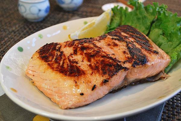 材料:鮭魚排250公克、檸檬適量、日式七味粉適量