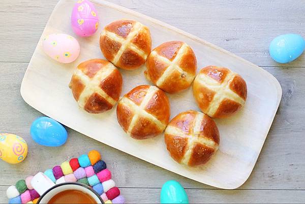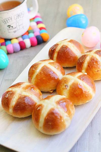 我一直喜歡英國的十字麵包Hot Cross Buns,之前做過湯種版本(食譜請參考:復活節十字麵包 Hot Cross Buns),類台式麵包的口感讓家中食客十分買單。這次試做英國烘焙大師/人氣評審Paul Hollywood的食譜(Paul Hollywood 官網),前後發酵了三次,果乾的份量極高,入口麵頭嚼勁與水果甜蜜感兼具。
