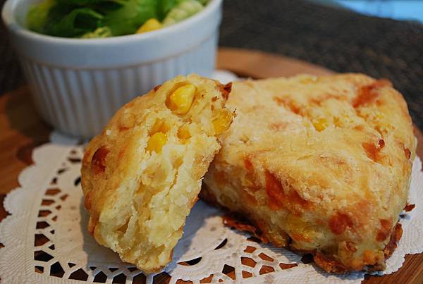 參考Cecillia的起司玉米麵包,不用揉也能做出類似比士吉的口感,酥鬆有彈性,
