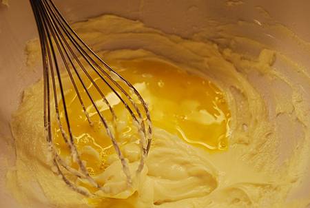 5. 分次加入蛋液打勻