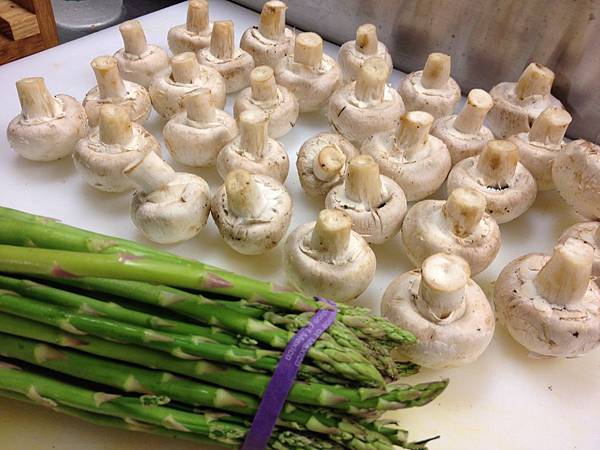 最後的最後,還要一人搞出一鍋濃湯,chef拿出蘆筍、磨菇與綠花椰菜讓我們選擇,我選了蘑菇6蘆筍4的組合,