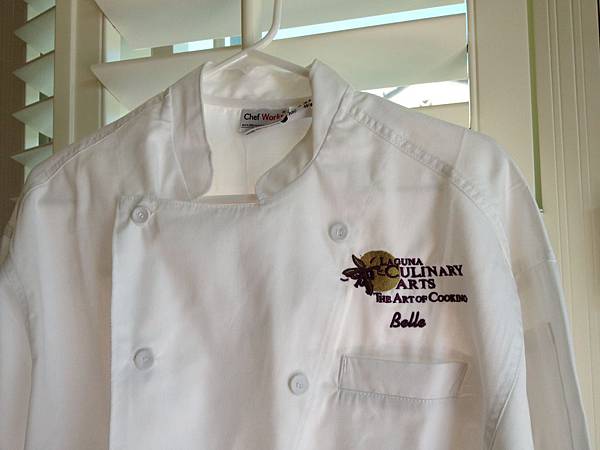 還拿到感人的廚師服,來炫耀一下!其實應該上課穿的,但遲遲沒有繡好名字,遲至今天才發。