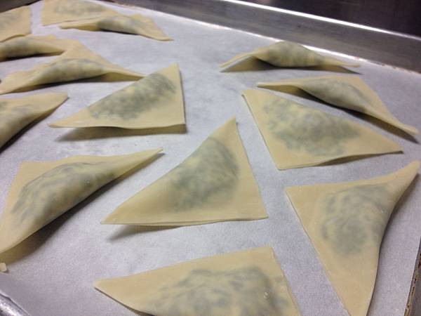 簡易版的意思是利用餛飩皮,美國有賣一種含蛋的有機餛飩皮,尺寸略小於我們習慣的樣子,