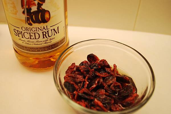 6. 加入步驟2蔓越莓乾與2tbsp蘭姆酒