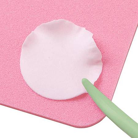 總之呢,做出一個類似香菇蒂頭地形狀,用細的塑型棒在薄海棉上壓出皺摺滾邊。