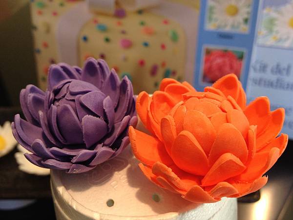 翻糖特性軟的時候很容易塑型,硬了以後又非常好定型,拿來做這類花朵頗能彰顯澎湃氣勢,