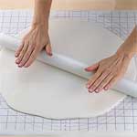 在塑膠墊上擀開您的翻糖,要精算一下,以6吋蛋糕2吋高為例,就需要擀出直徑6+2+2吋以上的翻糖,