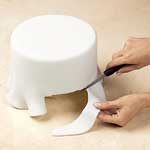翻糖裙角邊緣就以一鋒利小刀切除即可,待會再來介紹裙角裝飾。